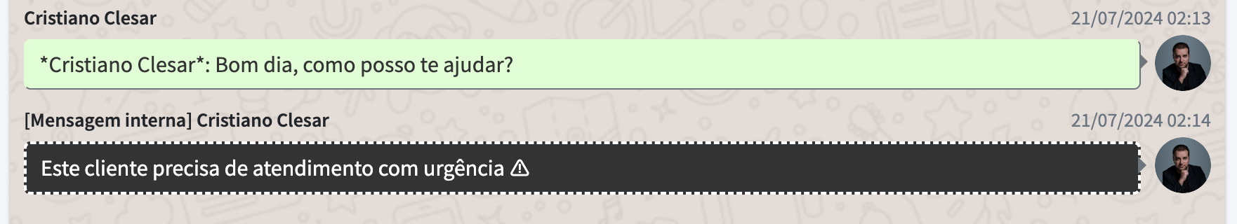 Utilize esta ação para enviar mensagens rápidas que foram pré-configuradas. As mensagens diretas podem ser compartilhadas com a equipe toda ou podem ser privadas de cada usuário do sistema.